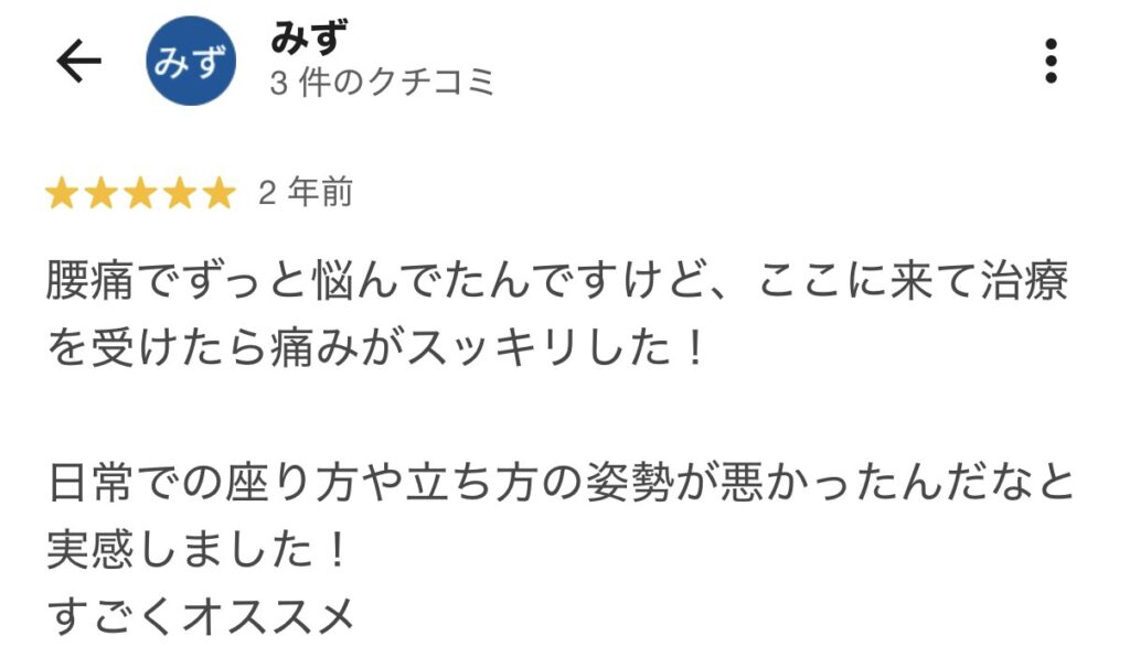 だからこそ多くの方から腰痛を改善したと喜びの声をいただいております。